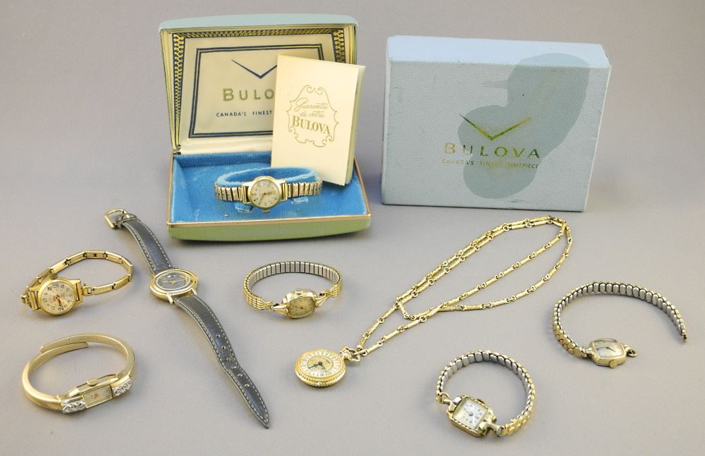 Bulova Box with Various Estate Vintage & Other Ladies Wristwatches.