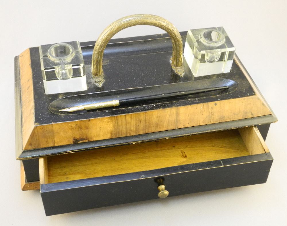 Writing Box, Pen & Inkwell Set, 12 3/4" Wide.