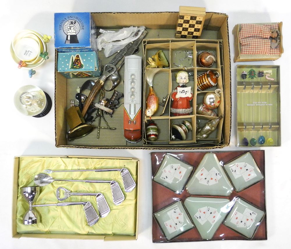 LOT 187 Lot of Vintage Sundries: Glass Xmas/ Golf/ Swizzle/ Smoking/ Avon/ Various Estimate: $50 - $60 Sold For: $30 Auction Date: Tuesday, January 31 2023 at 6:00 PM