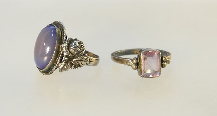 2 Silver (Marked) Rings: Amethyst & Cabochon, Size 6 1/4 & 5 1/2 TW 5.4G r.
