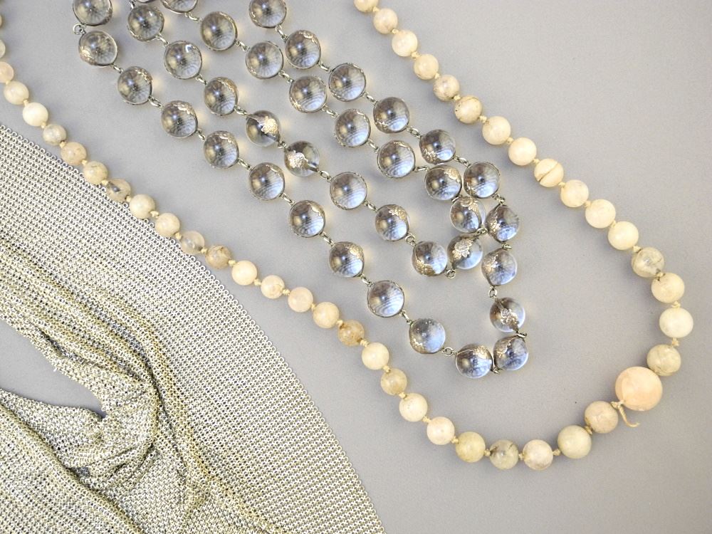 LOT 94 3 Necklaces: Quartz / Glass & Mesh with Mesh Earrings. Estimate: $50 - $60 Sold For: $325 Auction Date: Tuesday, January 31 2023 at 6:00 PM