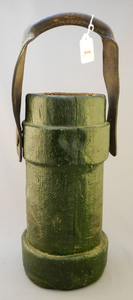 LOT 44 British Royal Navy 19th C. Leather Powder Bucket- Powder Monkey's Bucket- Type 2, 13 1/4". Estimate: $80 - $120 Sold For: $70 Auction Date: Tuesday, January 31 2023 at 6:00 PM