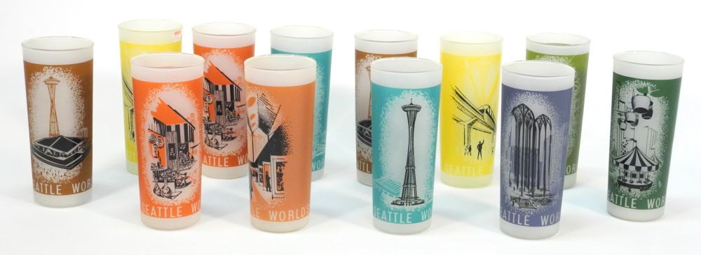 12 1962 Seattle World's Fair Glasses, 6 5/8" High