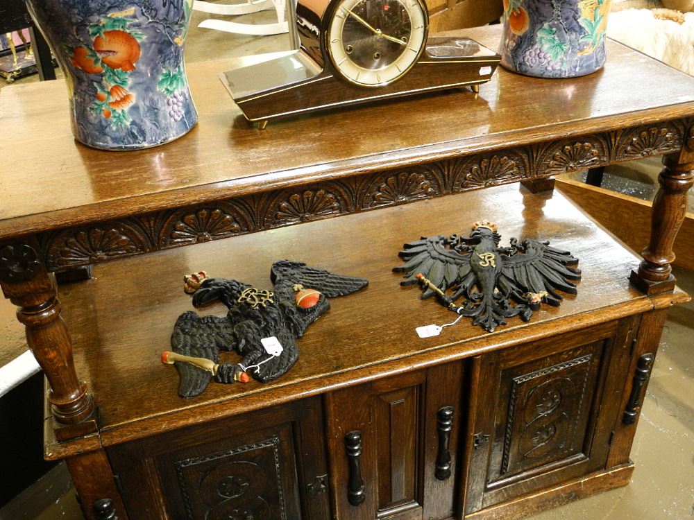 Carved Oak Tiered Side Cabinet, 45 1/2" Wide.