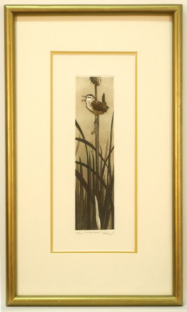 Etching Signed "Don Li-Leger", "Singing Wren" 13x5 1/2