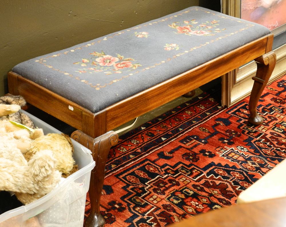 LOT 63 Mahogany Cabriole Leg Bench with Needlepoint Cover, 42 1/2" L. Estimate: $60 - $100 Sold For: $40 Auction Date: Tuesday, January 31 2023 at 6:00 PM