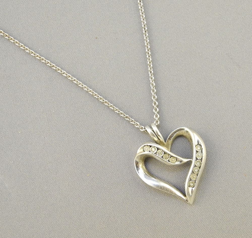 LOT 338 Vintage Sterling Silver Heart Pendant with Diamond Chips (Tested) & Heart-Shaped Box. Estimate: $60 - $100 Sold For: $50 Auction Date: Tuesday, January 31 2023 at 6:00 PM