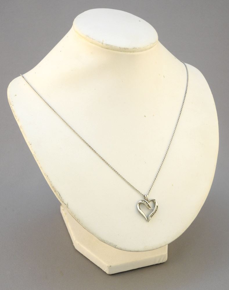 Vintage Sterling Silver Heart Pendant with Diamond Chips (Tested) & Heart-Shaped Box.