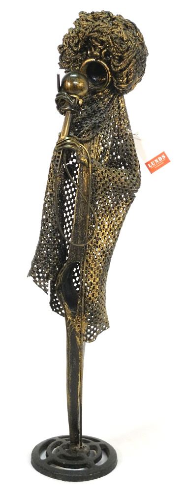 Contemporary Metal Work Statue of a Singer, 29" High.