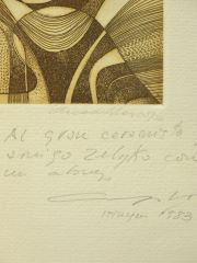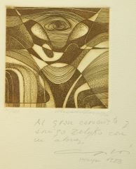 LOT 302 Sepia Etching signed Arcadio Blasco, Plate 3 7/8" x 3 7/8", "Royecto..." #75/125. Estimate: $50 - $60 Sold For: $25 Auction Date: Tuesday, May 14 2024 at 4:00 PM