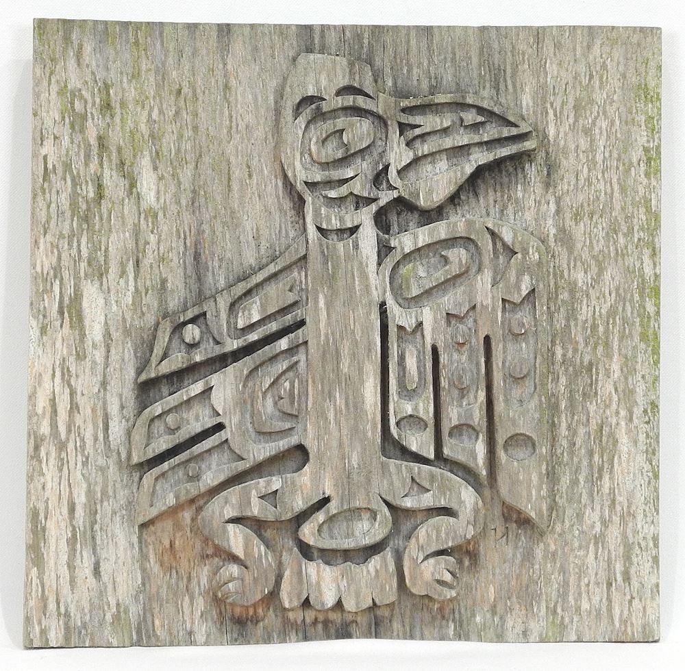 LOT 354 Manner of C.B.Greul "Haida Raven" Plaque Monogrammed APR'83, 12 x 12" Estimate: $50 - $60 Sold For: $25 Auction Date: Tuesday, May 06 2025 at 4:00 PM