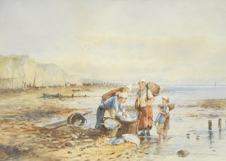 LOT 353 Watercolour signed Norman Bradley, 9 3/4" x 13 1/2", "Coastal Scene - Catching Fish" Estimate: $50 - $100 Auction Date: Tuesday, May 06 2025 at 4:00 PM