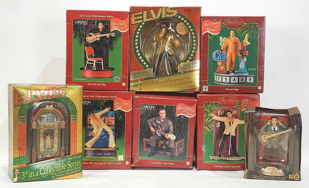 Eight Elvis Presley Musical Figurines in Original Boxes.