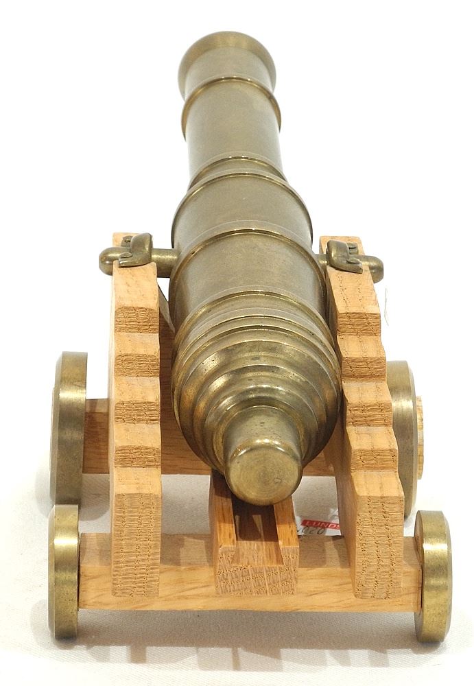 LOT 309 Brass Model Cannon on Carriage, 10 3/4", cannot fire. Estimate: $60 - $70 Sold For: $60 Auction Date: Tuesday, May 06 2025 at 4:00 PM