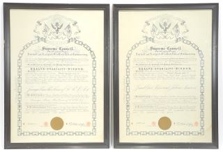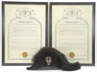 Ambrose Kent & Sons Bicorn Masonic Hat & Two Certificates, 33rd Degree.