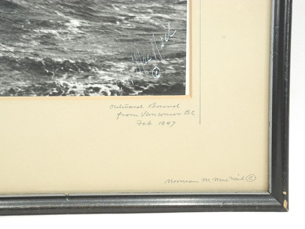 LOT 18 Photograph signed N. (Norman) M. MacNeil, 10 1/2 x 13 1/4", "Barque Pamir Outward Bound", Feb' Estimate: $50 - $100 Sold For: $100 Auction Date: Tuesday, May 06 2025 at 4:00 PM