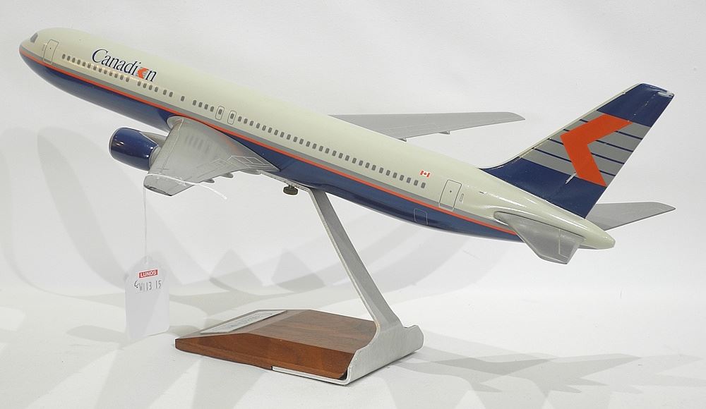 LOT 200 Canadian Airlines Model 727 Desk Model on Stand, 21 1/2"L. Estimate: $60 - $100 Sold For: $130 Auction Date: Tuesday, May 06 2025 at 4:00 PM