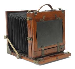 LOT 139 Manhattan Optical Co. "Wizard Sr" Mahogany Camera. Estimate: $60 - $100 Sold For: $200 Auction Date: Tuesday, May 06 2025 at 4:00 PM