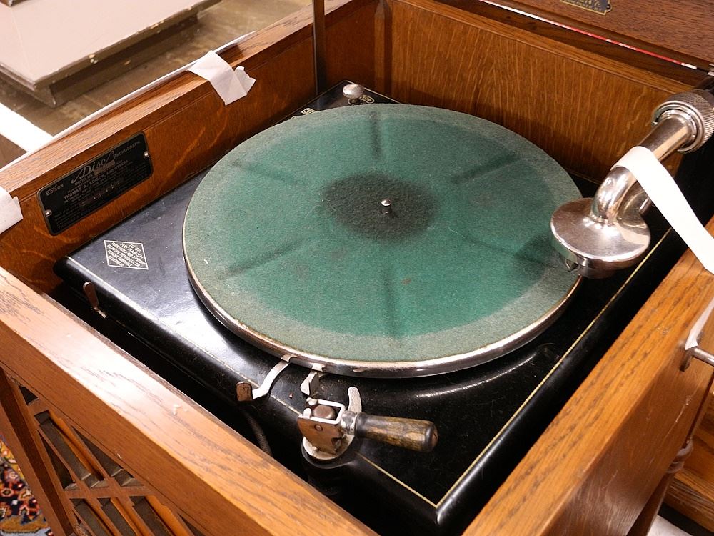 LOT 200A Oak Edison A-100 Diamond Disc Phonograph with Group of Records. Estimate: $80 - $120 Sold For: $120 Auction Date: Tuesday, May 06 2025 at 4:00 PM
