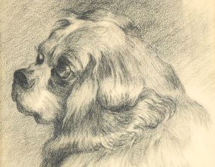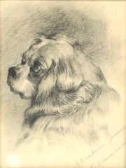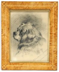 Graphite signed Edwin Landseer, 12" x 9", "A Blenheim Spaniel"