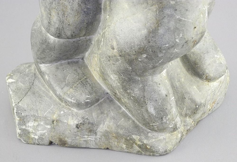LOT 183 Unsigned Inuit Stone Sculpture, 12 5/8"h, "Hunter Handling Seal" (base restored). Estimate: $60 - $100 Sold For: $80 Auction Date: Tuesday, May 06 2025 at 4:00 PM