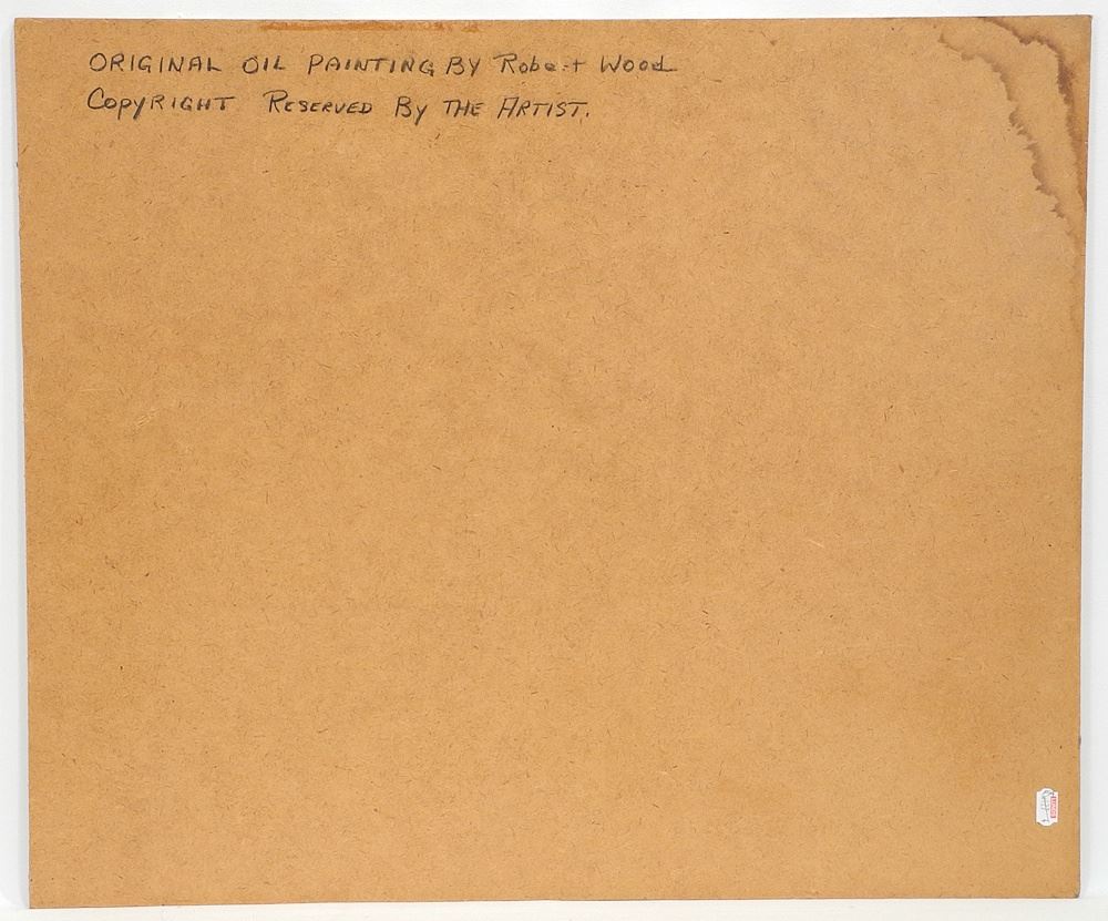 Oil on Masonite signed Robert Wood, 20 x 24", "Dallas Road Scene".