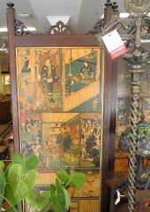 Late 19th C. Three Panel Screen Inset with Reproduction Japanese Prints.