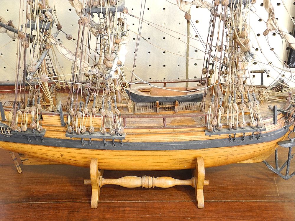 LOT 19 Model Ship on Stand, 23". Estimate: $100 - $150 Sold For: $200 Auction Date: Tuesday, May 06 2025 at 4:00 PM