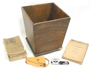 Office Specialty Mfg. Co. Oak Waste Paper Basket with Home Study Manual & Level.