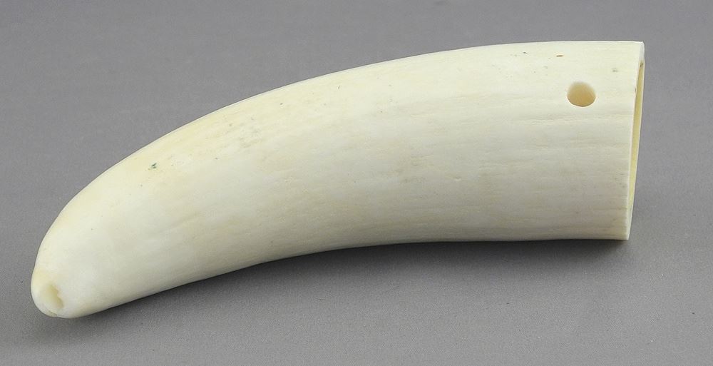 LOT 78 Sperm Whale Tooth, 5"L, 144g, Pierced, NO EXPORT. Estimate: $150 - $250 Sold For: $150 Auction Date: Tuesday, May 06 2025 at 4:00 PM