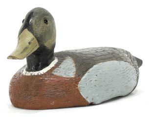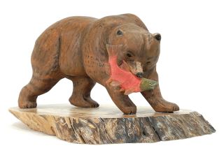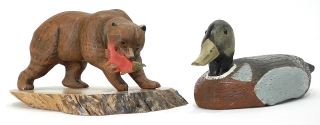 Folk Art "Bear & Salmon" Carving signed Edmund Nelson BC (12"w) & Duck Decoy, 13"L.