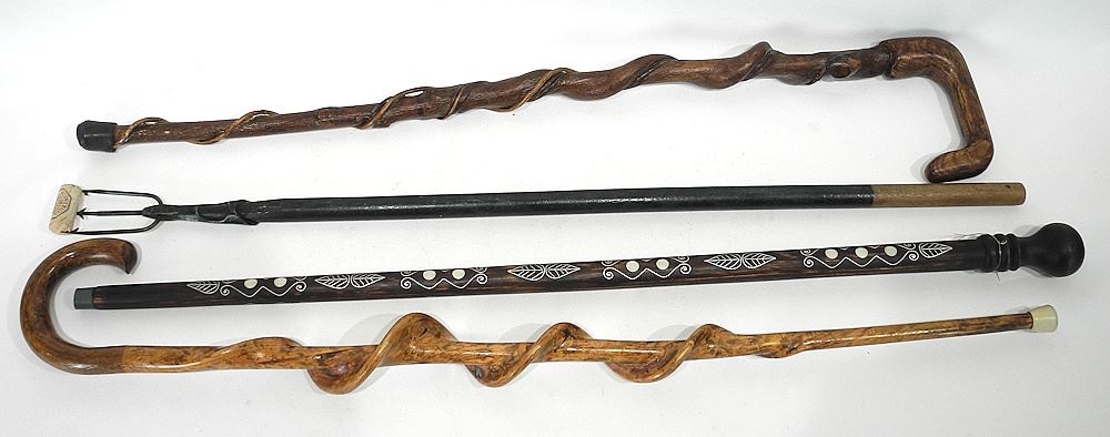 Vintage Frog Spear & Three Walking Sticks, 36 - 37"L.