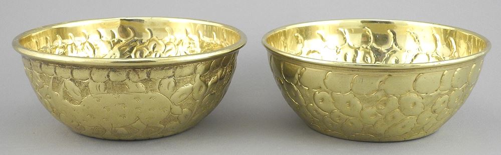 Brass Tray & 2 Bowls with Candle Sconce and Bronze Inkwell, Oval 5"
