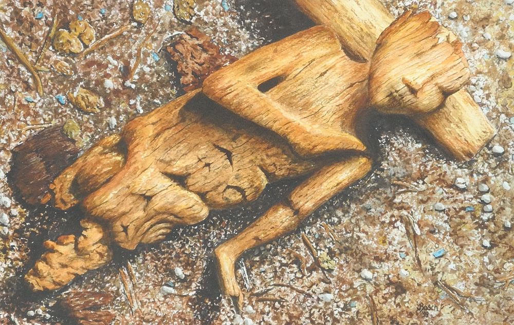 Watercolour signed Bosch'99, 7 1/2 x 11 3/4", "Wooden Figure".