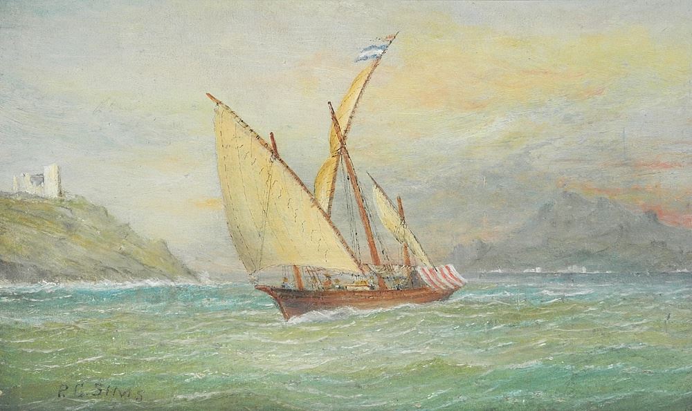 LOT 153 Oil on Panel signed P.C. Sims, 5 1/2 x 9", "European Sailing Vessel". Estimate: $50 - $70 Sold For: $25 Auction Date: Tuesday, July 08 2025 at 4:00 PM
