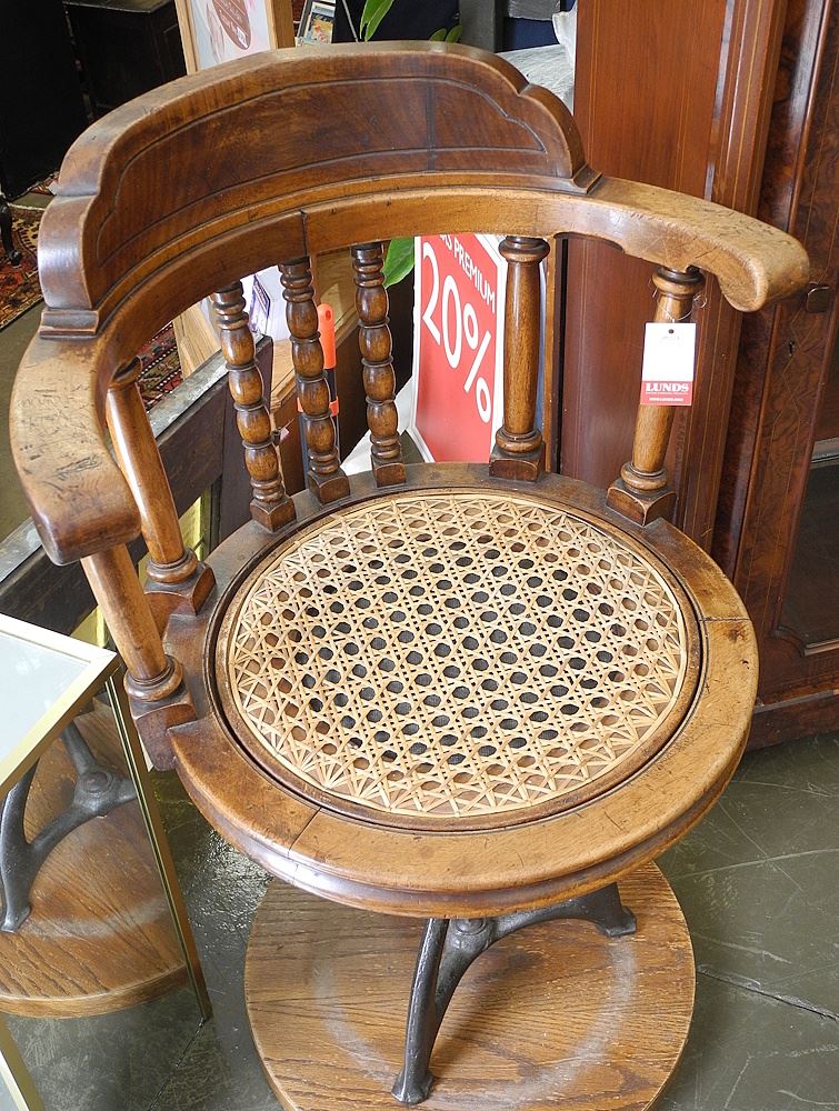 LOT 33 19th C. Mahogany & Cast Iron Captains Swivel Chair, 34 1/4"h. Estimate: $80 - $120 Sold For: $180 Auction Date: Tuesday, July 08 2025 at 4:00 PM