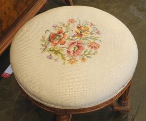 LOT 40 Louis XVI-Style Needlepoint Mahogany Foot Stool, 16 3/4"h. Estimate: $50 - $100 Sold For: $40 Auction Date: Tuesday, July 08 2025 at 4:00 PM