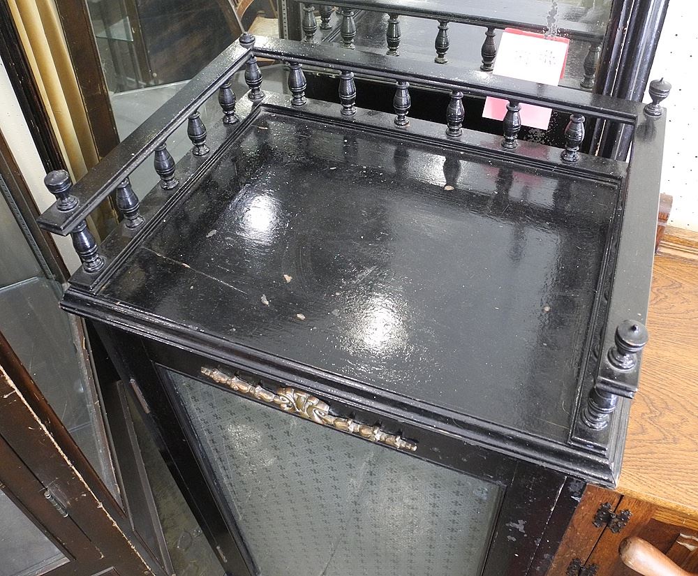 LOT 17 19th C. Ebonized Sheet Music Cabinet with Etched Glass Front. Estimate: $60 - $100 Auction Date: Tuesday, July 08 2025 at 4:00 PM