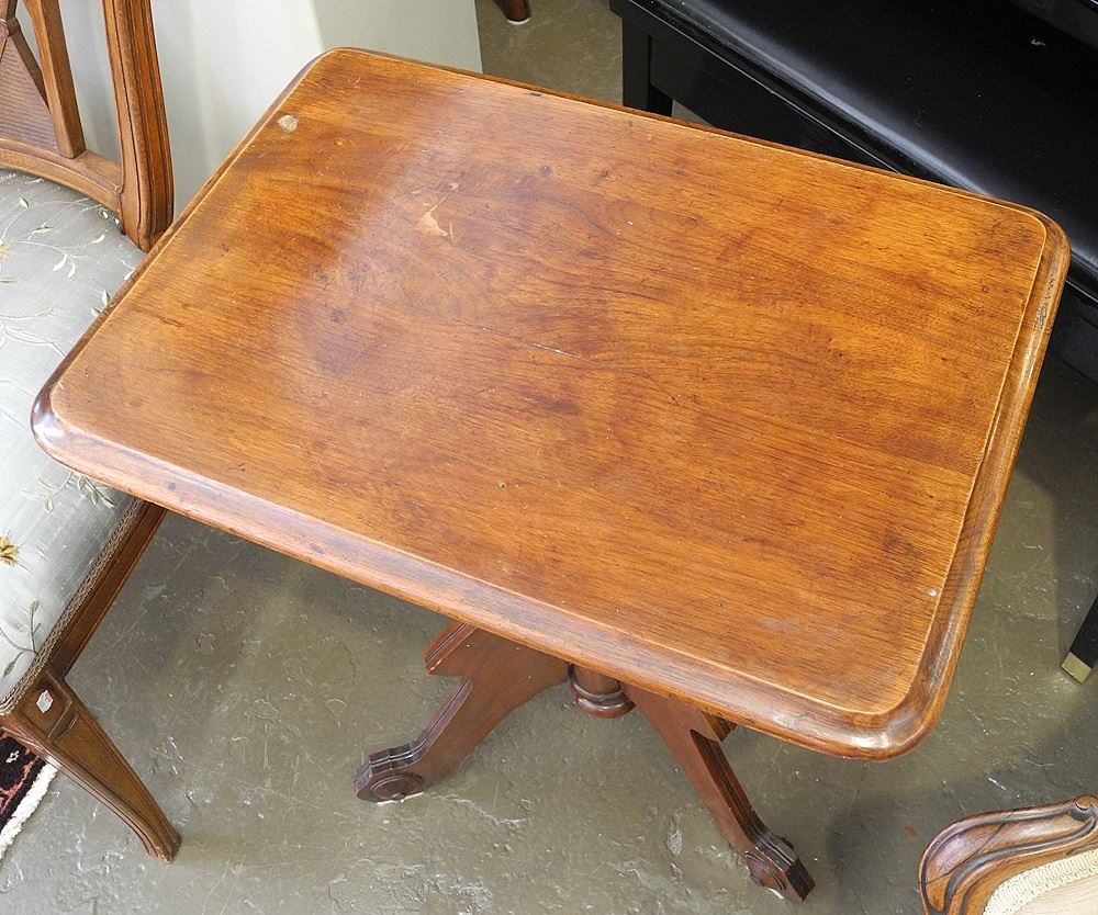 LOT 59 Victorian Mahogany Tripod Table, 22" x 16" x 27 1/2"h Estimate: $50 - $80 Sold For: $15 Auction Date: Tuesday, July 08 2025 at 4:00 PM