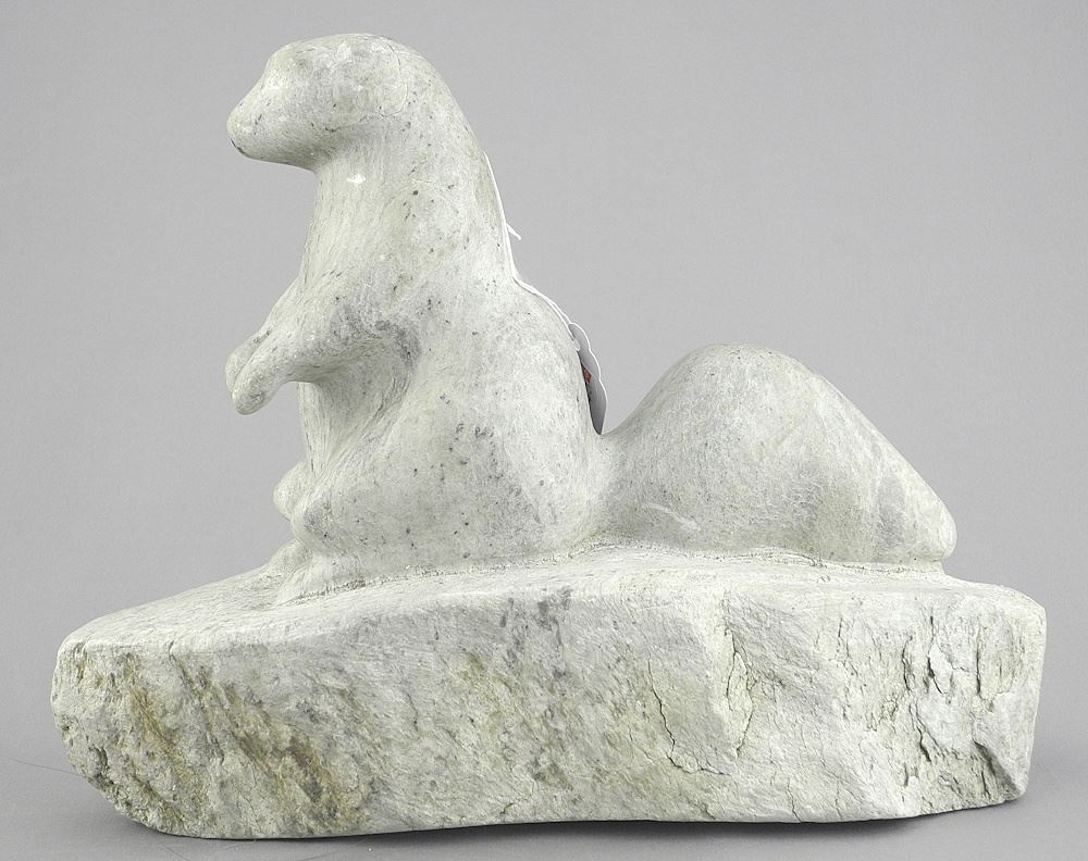 Stone Squirrel Carving signed N. Allard, 9 3/4"L (rest. to head noted).