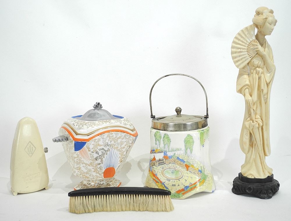 LOT 103 Collection of Vintage Curiosities: Biscuit Barrels/Stuffie/High Spy/ Mother Goose. Estimate: $50 - $60 Sold For: $50 Auction Date: Tuesday, July 08 2025 at 4:00 PM