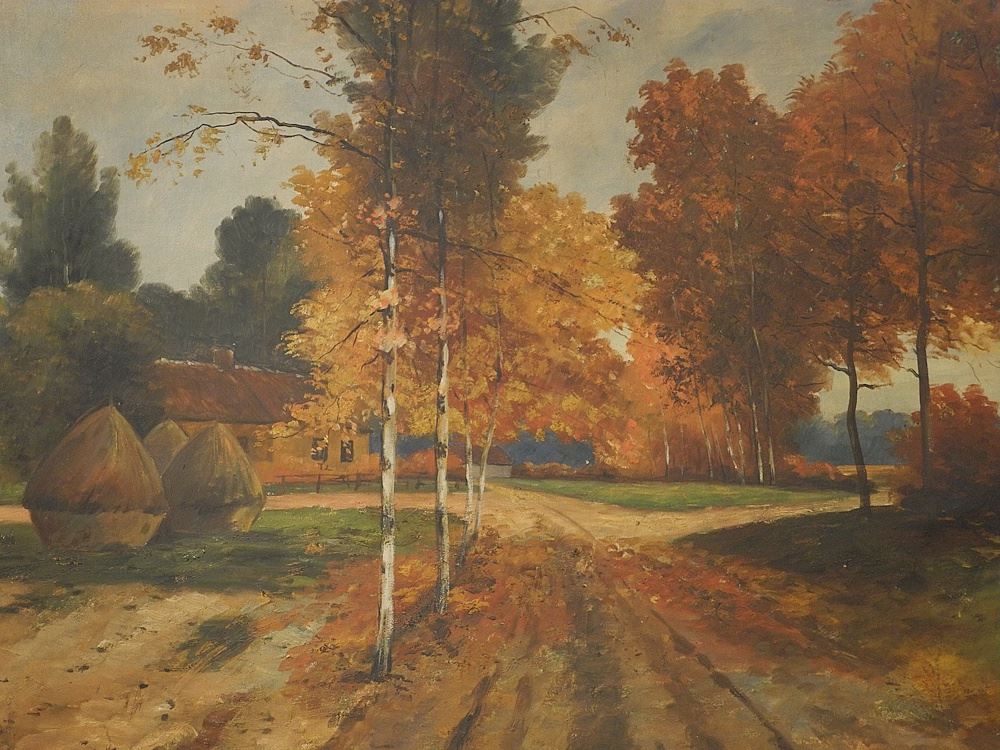 Oil on Canvas signed Jules de Genese "Autumn Scene", 34 1/2 x 43 3/4".