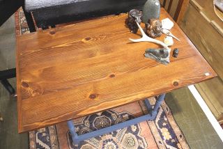 Blue Painted Pinetop Table, 24 7/8"h