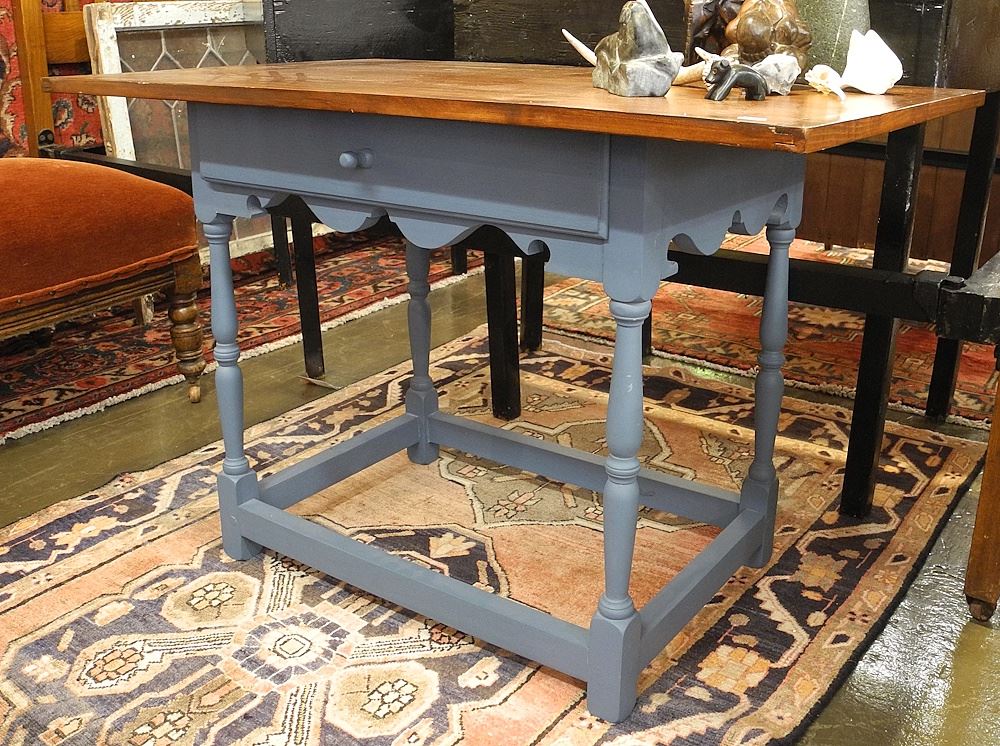 LOT 265 Blue Painted Pinetop Table, 24 7/8"h Estimate: $50 - $60 Sold For: $25 Auction Date: Tuesday, July 08 2025 at 4:00 PM