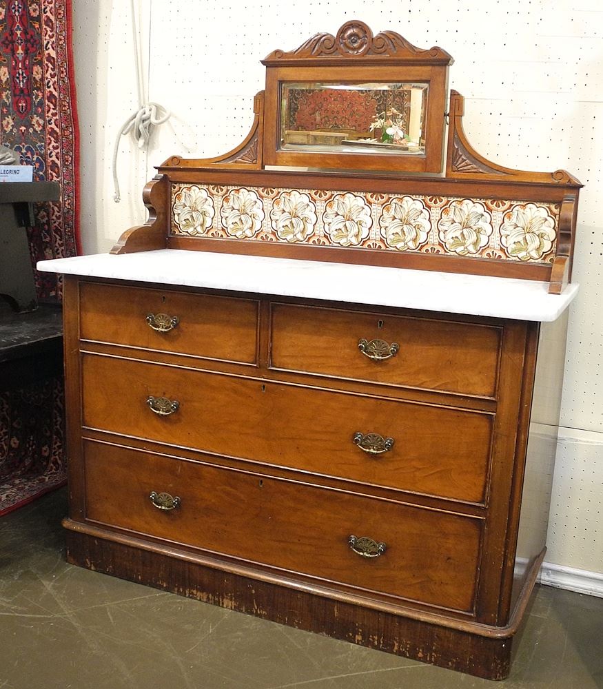 LOT 111 19th C. 4 Drawer Washstand with Marble Top & Mirror. Estimate: $100 - $200 Auction Date: Tuesday, July 08 2025 at 4:00 PM
