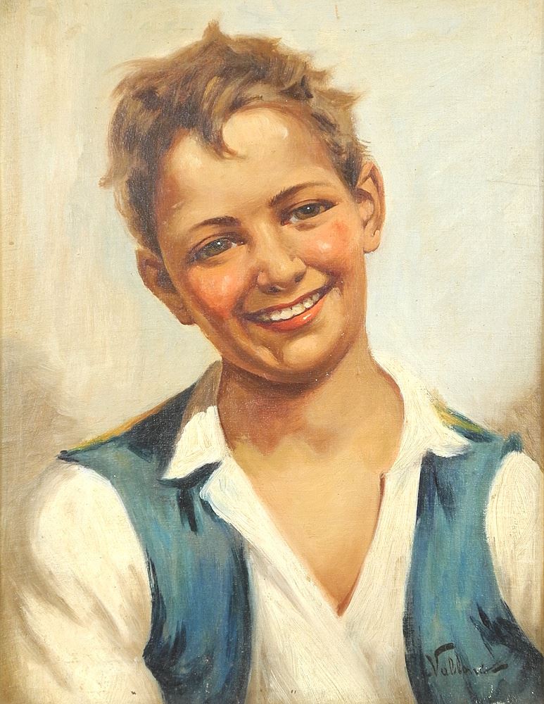 LOT 18 Oil on Canvas signed **** Vallance, 16 3/8 x 12 1/2", "Grinning Boy". Estimate: $50 - $100 Sold For: $25 Auction Date: Tuesday, July 08 2025 at 4:00 PM