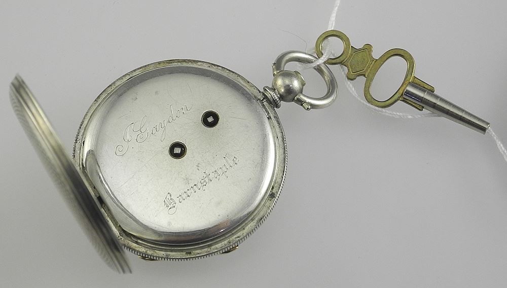 Fine Silver (Marked) Pocket Watch Interior Marked J. Gaydon - Barn- Staple, TW 38.5 grams.