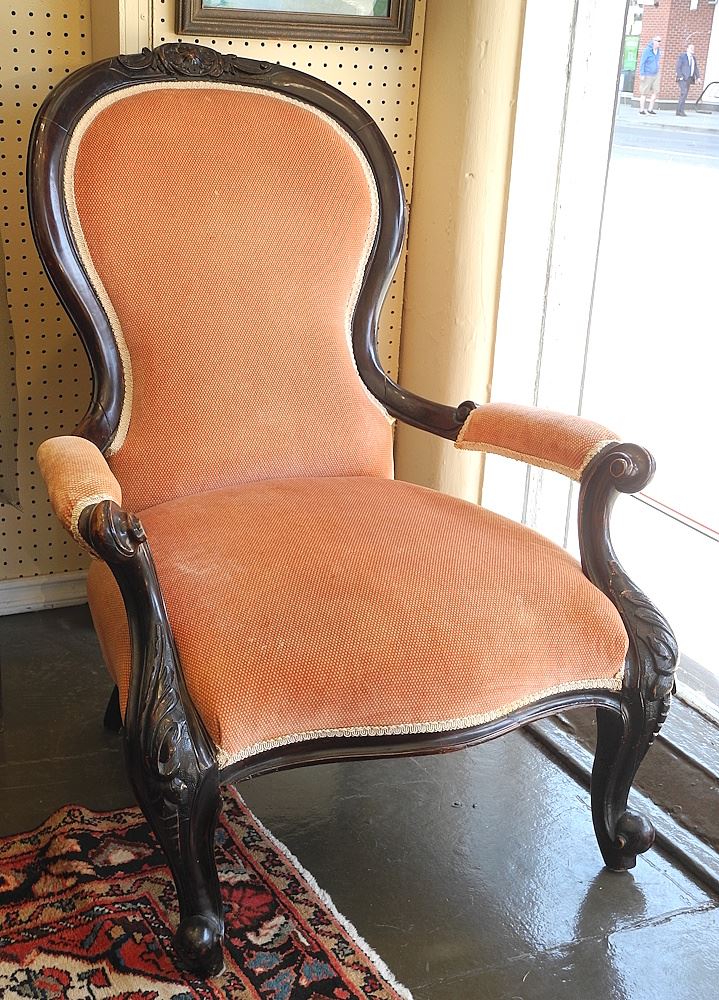 Two Victorian Fireside Chairs, 34 & 36 1/2"h (as found).