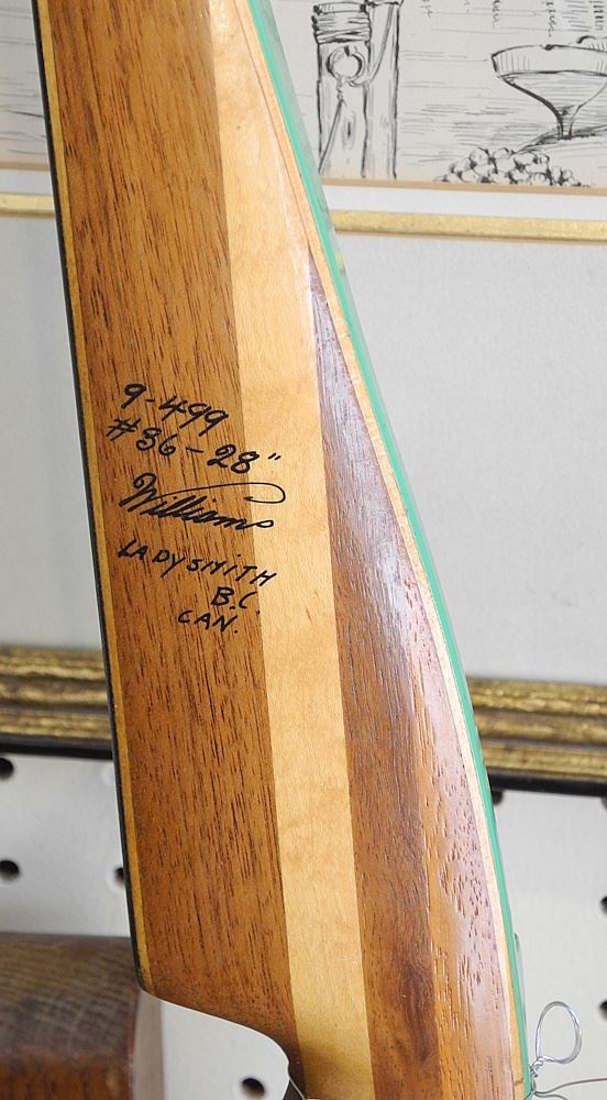 LOT 4 Handmade Bow signed Williams Ladysmith BC, 63 1/4"h. Estimate: $60 - $100 Sold For: $140 Auction Date: Tuesday, July 08 2025 at 4:00 PM