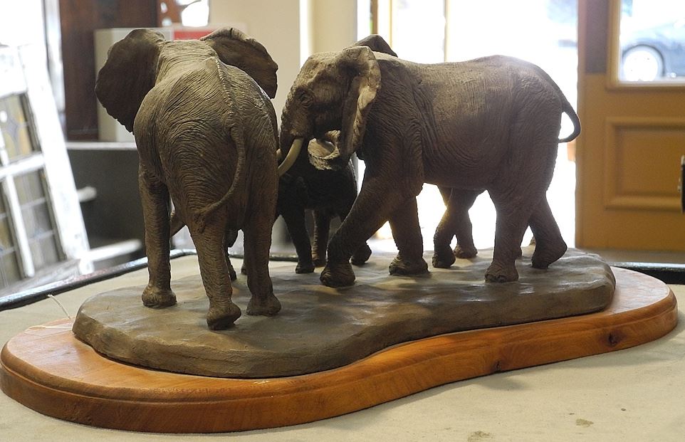 Ceramic Elephant Diorama, 19"w.